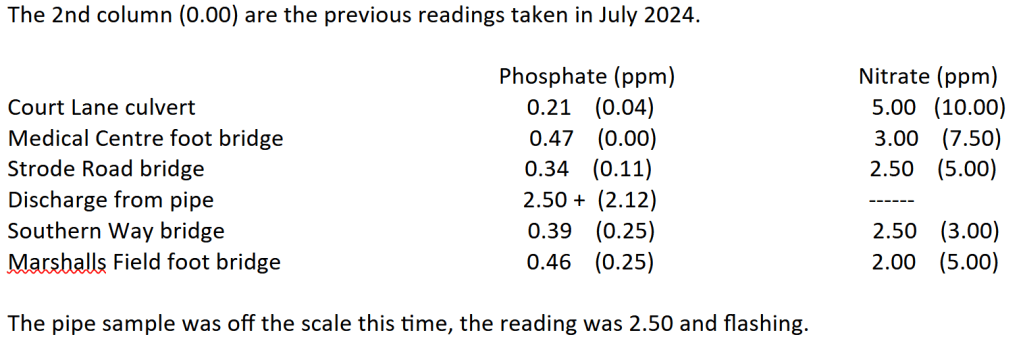 Paul’s section (Strode Road to the outfall including Jacobs Walk) – Nesting Swans and signets have left this area there has been a possible sighting up stream.