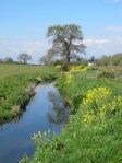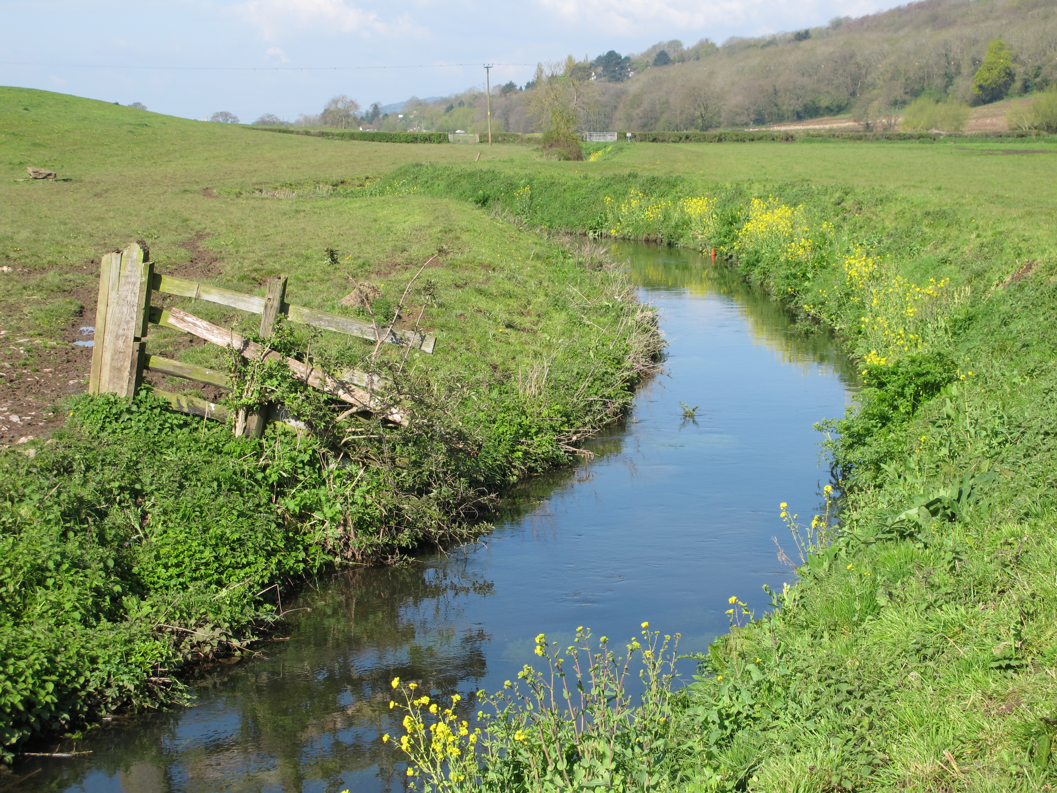 After walking down the lane past Bird Combe Court, cross the field then follow the river down stream back to the trout farm